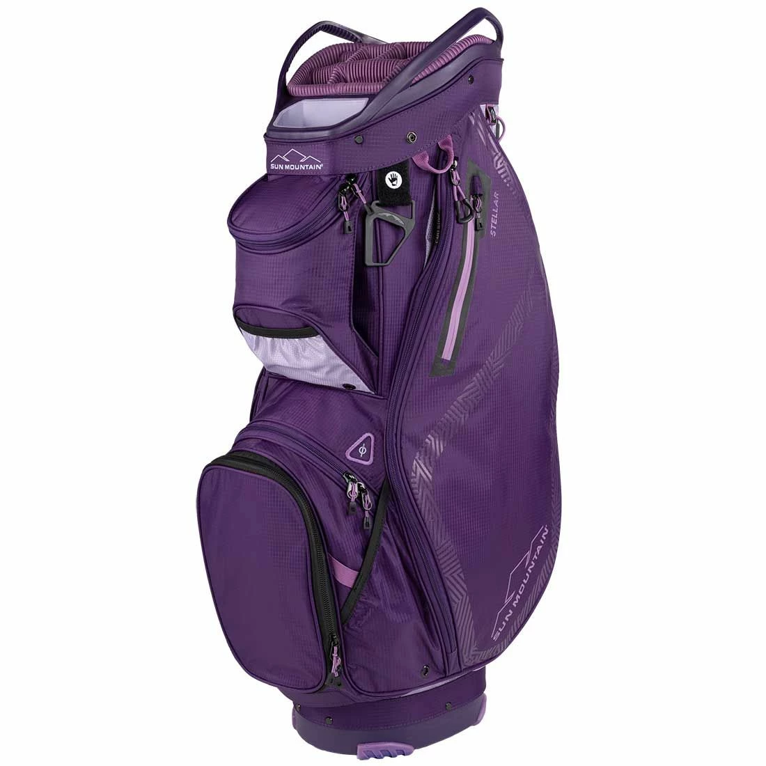The Stellar is a lightweight, full-featured riding cart bag. For convenience, all pockets are front-facing, so they are accessible when the bag is on a cart and the top has two integrated lift-assist handles for lifting the golf bag on and off the cart.